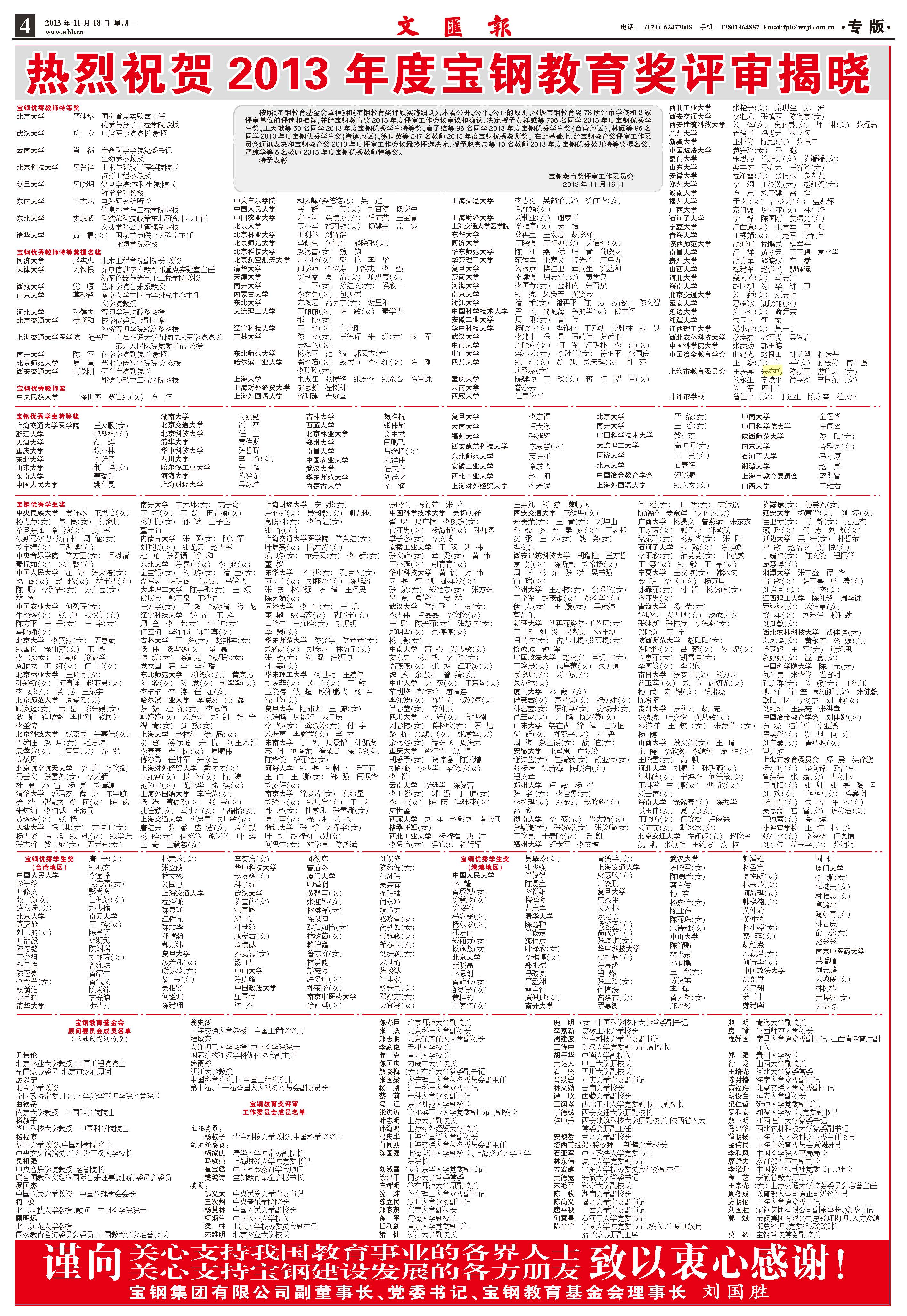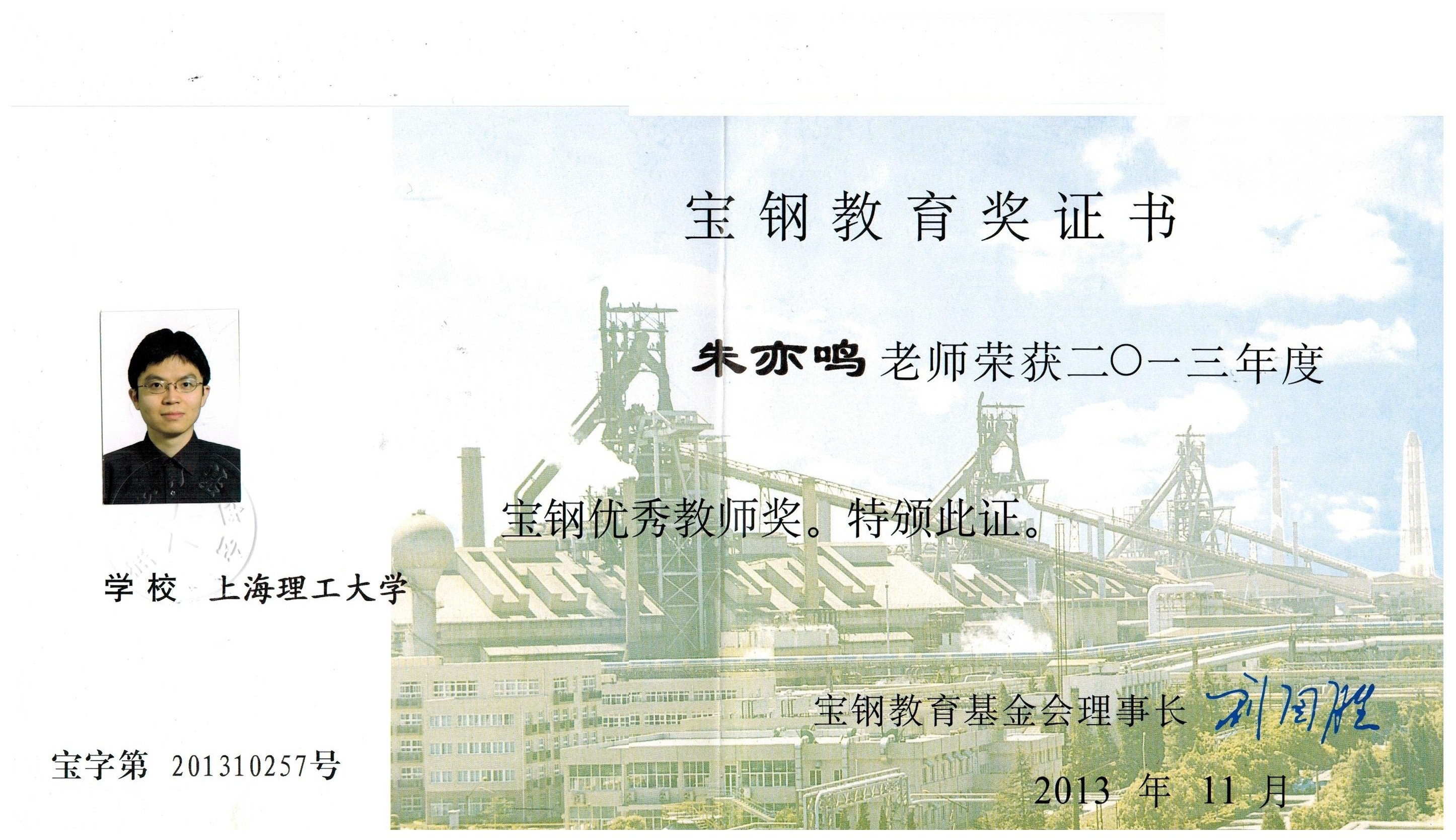 本学院朱亦鸣教授荣获2013宝钢优秀教师奖