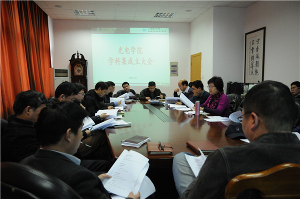 2014年3月4日下午,beat365在线唯一官网学科集成立大会在学院401会议室顺利举行,学院常务副院长杨永才、分党委书记朱莉、学科分管院长王朝立等学院领导、各学科负责人及省部级人才出席大会。 会上,朱莉首先宣布了院务会议讨论的最新决定,即以光学工程为主干学科,组建三个具有光电个性的、相近学科交融的学科集,并宣读了光电信息学科(群)和各学科集建设委员会名单。杨永才针对学科集建设发表讲话,表达了学院对推动学科协调发展的决心和重视,对各学科集未来发展提出要求和希望,希望通过学科集的建设,加强学科间的交叉融合,推动光电信息学科群高速发展,为实现学校“精品本科,一流学科,百强大业”的目标作出贡献。随后,王朝立对学科集具体开展进行了简要指导。