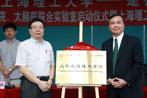 校长胡寿根与是德科技全球副总裁严中毅先生为光电先进技术学院揭牌