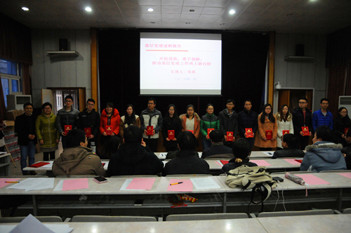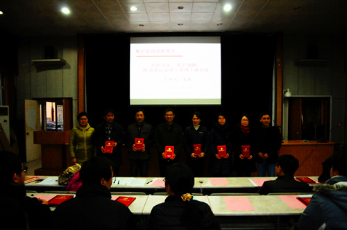 光电学院电气工程党支部书记忻尚芝老师做了《“项目式管理 联动式共建”的党建联建工程实践与探索》教工卓越党支部案例申报经验交流,2012级本科生第一党支部书记周丽娜做了《活跃在一线的临时党小组》学生卓越党支部申报经验交流。党委副书记曹英宣读了表彰光电学院2015年度优秀党员、优秀党务工作者及优秀党支部的名单,朱莉书记、杨永才院长为获奖个人与支部进行了颁奖。