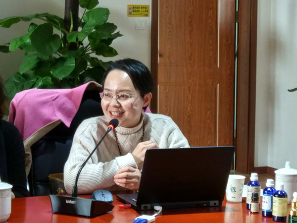 陆女士在讲座上进行了细致入微的讲说。由芳香疗法的发展历史,到芳香产品的专业知识,再到芳香疗法涉猎到的保健范围。几个简单易学的小动作,几滴好吸收又不腻的调和油,几口清爽别致的花露饮水,都让现场的女教职工颇感受用。现场讨论气氛十分活跃。