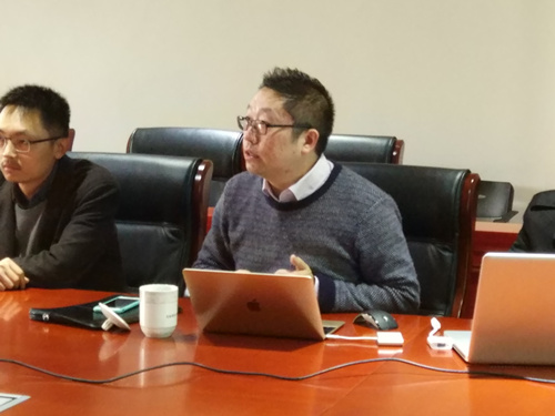 交流会上,作为邀请人,程抒一首先为校企双方代表一一做了介绍,重点介绍了各自从事的研究领域,以及目前取得的重要成果。随后,程抒一向与会人员讲述了校企合作共建“人机交流研究所”的构想由来、拟定的组织架构以及平台未来的发展规划。张相廷作为企业代表在会上发言,他强调了在中国制造2025和上海科创中心的建设背景下,建立这样一个平台是具有重要意义的,对平台未来的运营和管理模式也提出了建设性的建议。