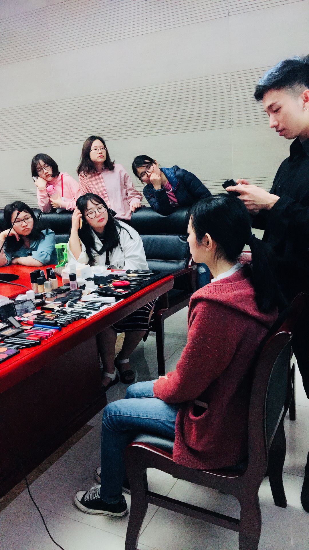 周坤校友从大三因兴趣而自学化妆,至今已积累了不少行业经验,参与了上海电影节等大型活动。他谈到:“关于化妆,我觉得它是一种基本的礼貌,不仅仅是为了让自己变美,更多是一种自信,日后等你们进入职场,干净大方,衣着得体会让你比别人有很多的机会。”