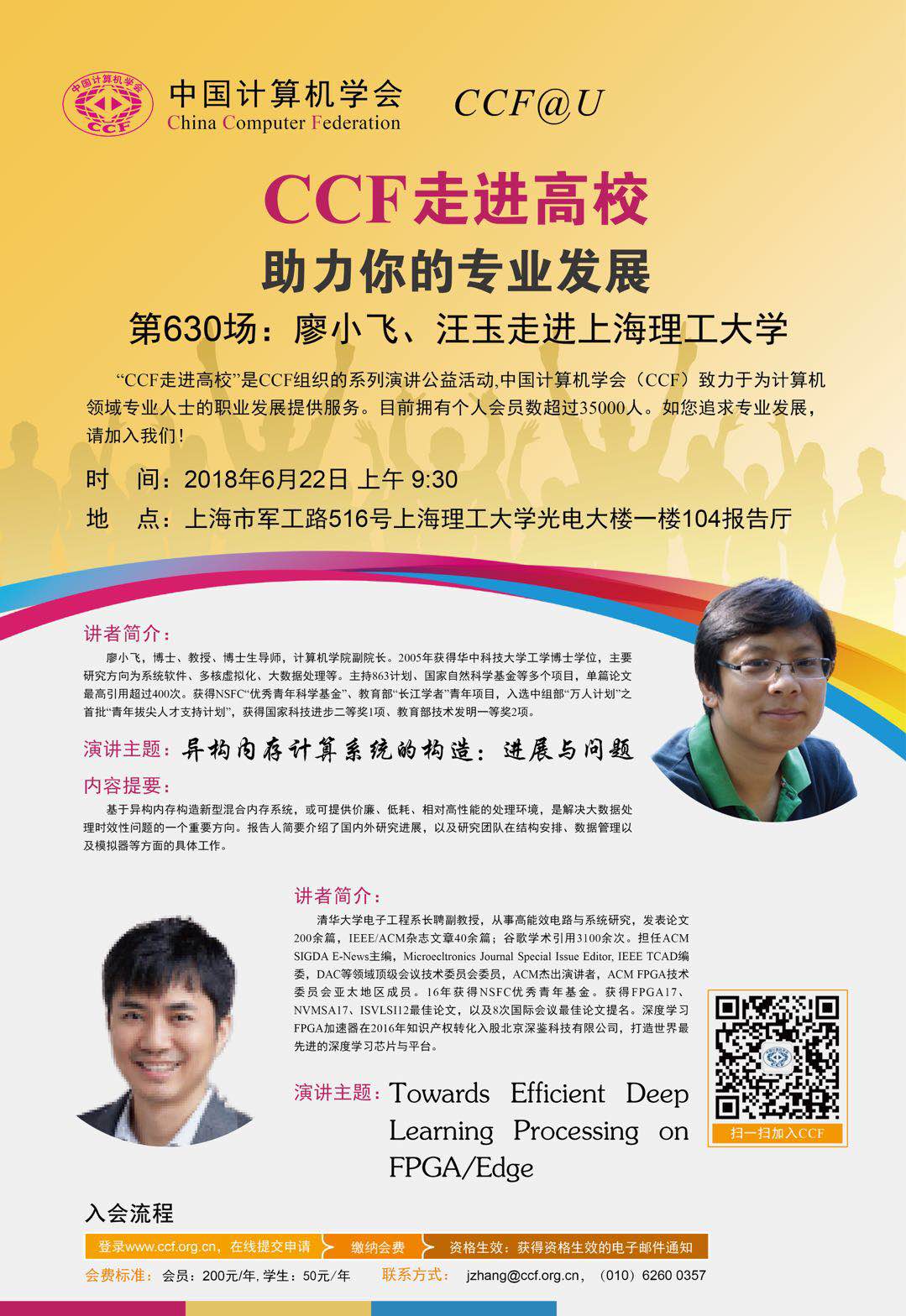 讲座通知:CCF走进高校——廖小飞、汪玉走进上理工