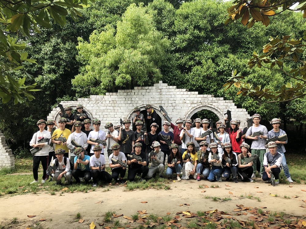 真人CS体验活动将当天活动带入高潮。“战斗”开始前,军事教练详细介绍了各类作战装备的操作方法和作战性能,其中不乏有学生军事迷询问射程等问题,并与“战友”交流我国军事发展最前沿的成就。进入丛林,“战斗”开始,学生们有的分散奇袭,有的集中进攻,还有的利用战壕、树叶、城墙等巧妙躲避。最终,经过近40分钟的“激战”,由一组、二组组成的联合一大队获得胜利。赛后,不少同学表示,虽然这次真实情景的作战体验时间很短,但是蚊虫叮咬、作战设备沉重等困难依然让他们联想到,真实军队训练中,军人战胜艰苦环境的坚强意志、苦练作战技能的上进心态和强军报国的集体荣誉感。