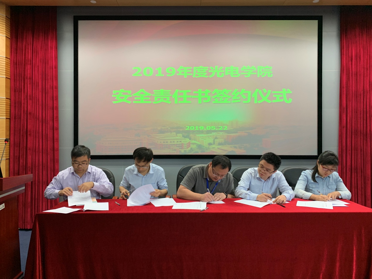 5月22日下午,全院教师大会暨2019年度光电学院安全责任书签约仪式在光电楼报告厅顺利举行,学院党委书记陈海瑾主持会议,大约150余名教工出席了大会。