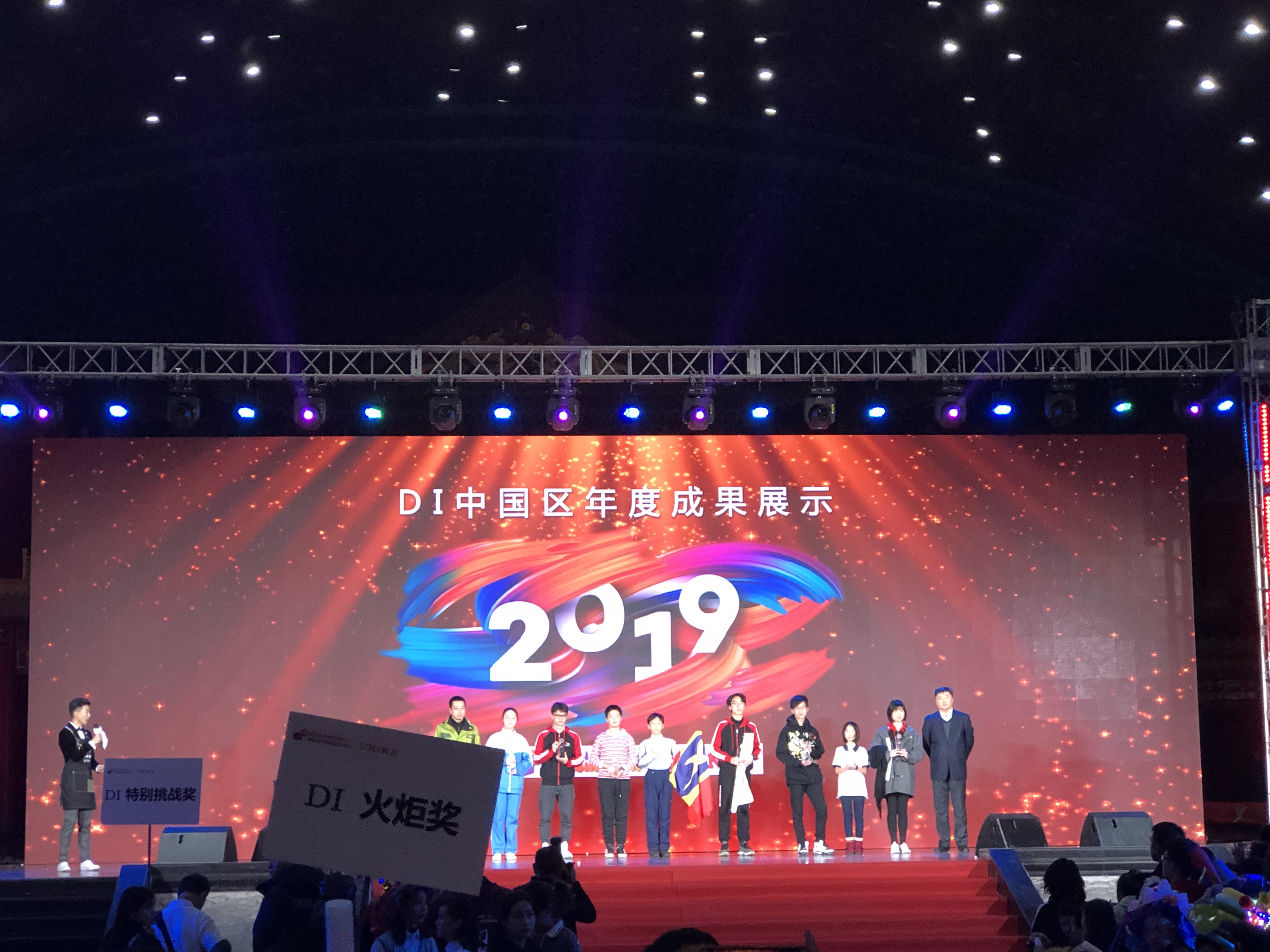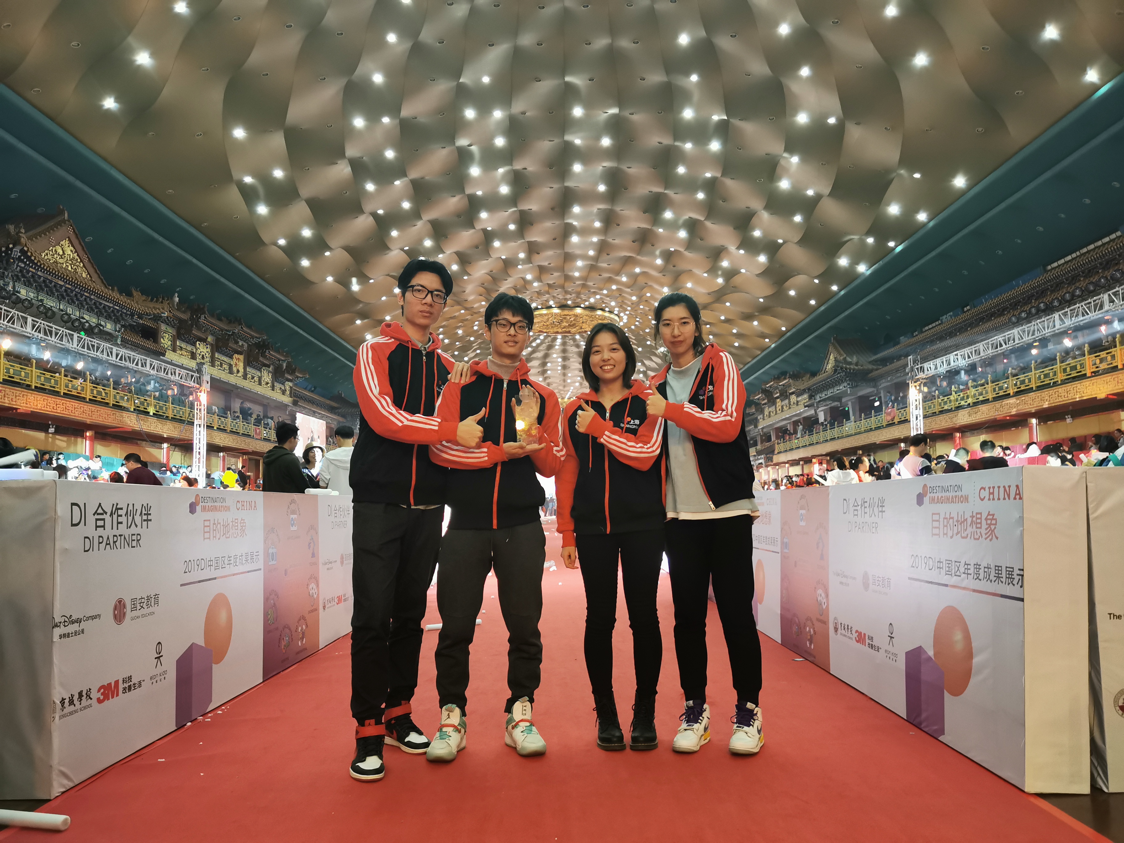 9日晚上,队长潘乐玎同学代表队伍上台领奖,聚光灯之下,沉甸甸的奖杯,是DI参赛队的最高荣誉,是这支队伍代表beat365在线唯一官网取得的成绩。