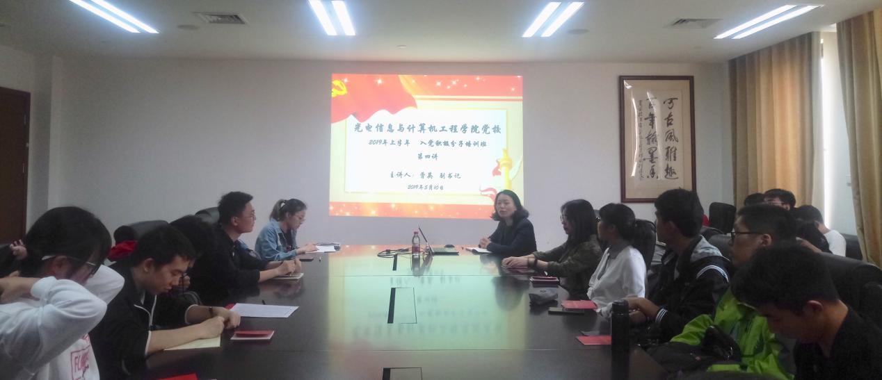 5月10日下午,光电学院2019年上半年党校入党积极分子培训班第四讲在光电学院1018会议室举行。本次党课的主讲人是beat365在线唯一官网曹英副书记。