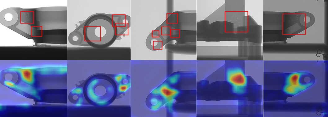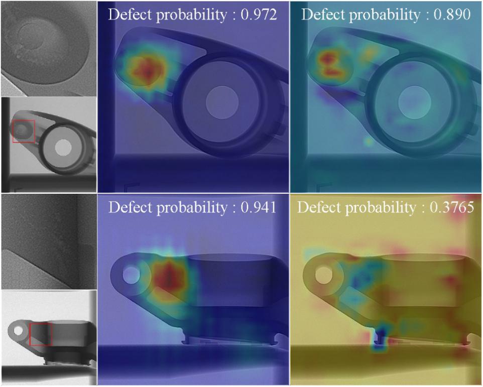 胡川飞同学在IEEE Transactions on Industrial Electronics期刊上发表名为“An Efficient CNN Model Based on Object-level Attention Mechanism for Casting Defects Detection on Radiography Images”( 一种新型基于对象注意力机制的卷积神经网络及其铸件缺陷检测中的应用)的研究论文,设计了替代人工检测的人工智能解决方案,通过剖析各种缺陷所存在的局部特性,提出了新颖的注意力机制,辅助CNN深度学习模型在不依赖精准标注的前提下,对微小缺陷能够准确检测,突破了基于射线图像的铸件缺陷检测存在的瓶颈。同时,自动生成了类别激活图,增加了模型预测的可解释性。此方法具备了在工业生产中的应用实时性,具有较高的理论和实用价值。图2和图3是缺陷局部特性的分析和模型预测的可视化分析。(论文链接:https://ieeexplore.ieee.org/document/8948332)
