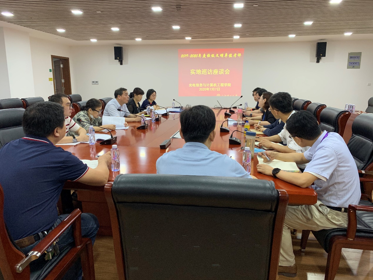7月7日上午,beat365在线唯一官网党委副书记、副校长盛春带领2019-2020年度校级文明单位评选巡访组来我院开展实地巡访。巡访组成员包括:校党委常委、宣传部部长叶磊,校文明观察员王志红,组织部副部长李琴,巡访组秘书张柳。光电学院党政领导班子全体成员和师生代表参加巡访座谈与交流会。