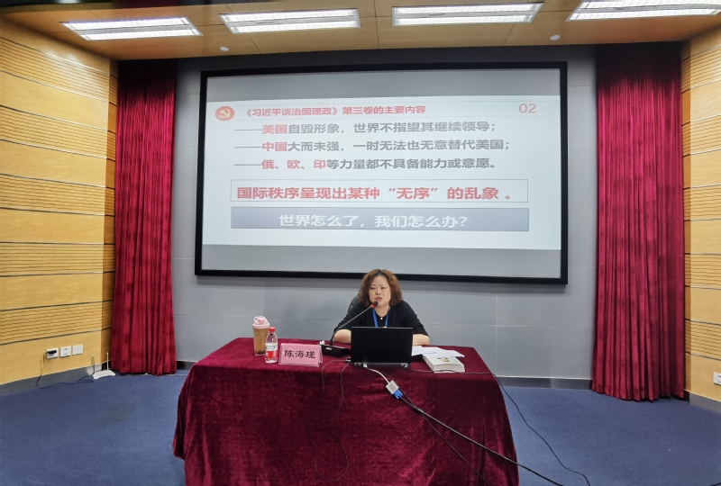 党课伊始,陈海瑾书记首先向学员介绍了《习近平谈治国理政》第三卷与先前出版的第一卷和第二卷的紧要关联,第三卷与先期出版的第一卷、第二卷,构成一脉相承、有机统一的整体,是全面系统反映习近平新时代中国特色社会主义思想的权威著作。紧接着,陈书记分别从《习近平谈治国理政》第三卷的总体框架、主要特色向全体学员详细阐释了第三卷的主要内容。党课最后,陈书记向全体学员详述了第三卷的重要意义,这部重要著作生动记录了党的十九大以来以习近平同志为核心的党中央,团结带领全党全国人民立足“两个大局”、推进“两个革命”、全面建成小康社会的伟大实践,生动展示了马克思主义中国化的最新成果。
