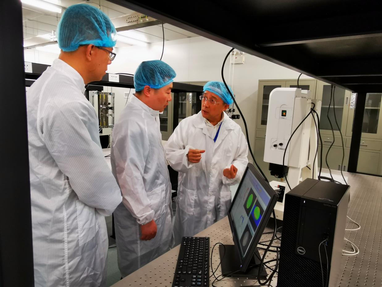 韩森教授(右)在实验室与哈工大教授王伟波(中)、哈工大教授王绍凯(左)进行学术交流