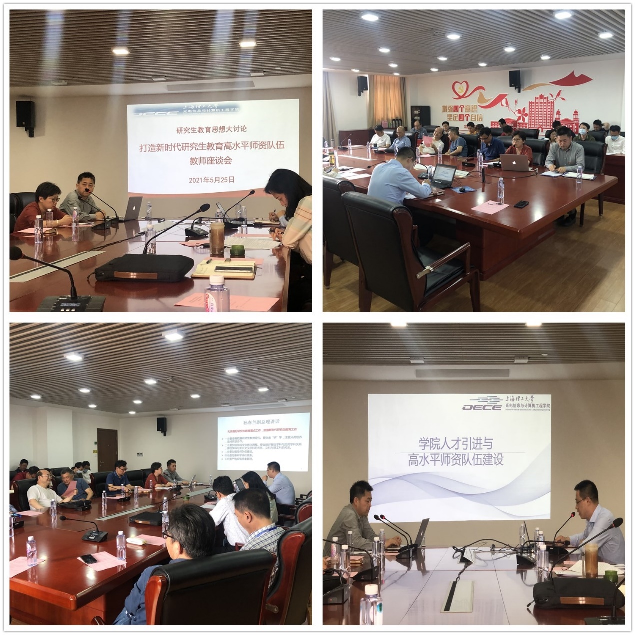 5月25日下午,光电学院举行了以“打造新时代高水平研究生教育师资队伍”为主题的研究生教育思想大讨论教师座谈会。学校研究生院副院长王张琦、学院党政班子、各系主任、学科带头人和教师代表40多人参加。会议由副院长彭敦陆主持。
