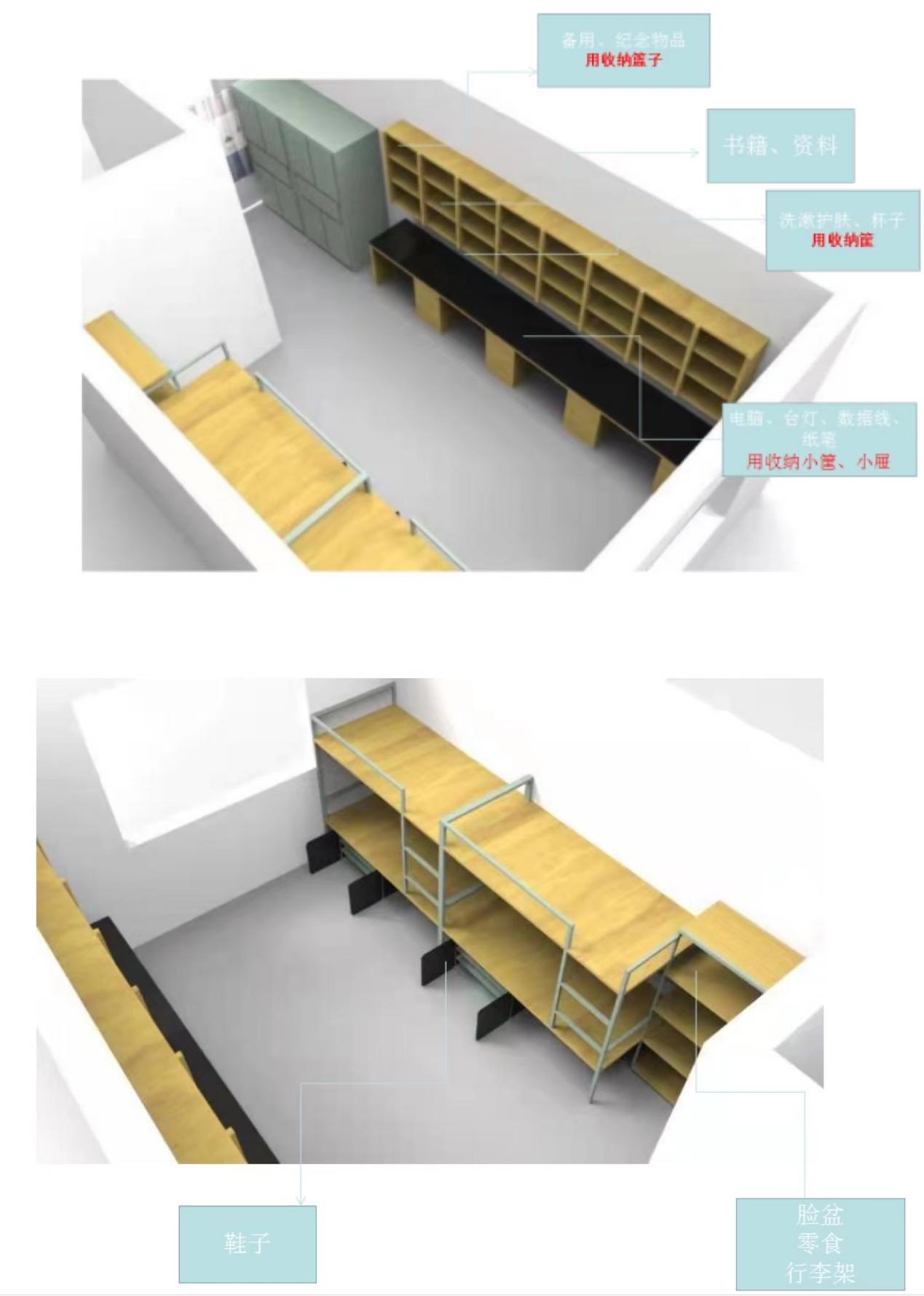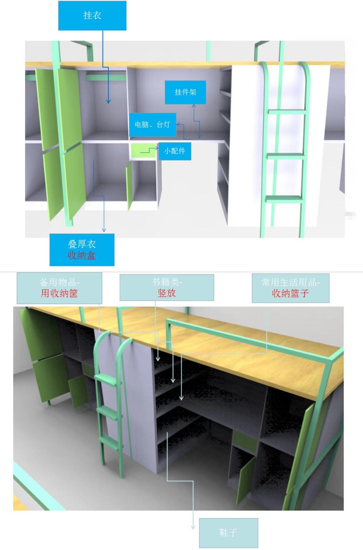 (“上床下桌式”寝室收纳规划建议)
