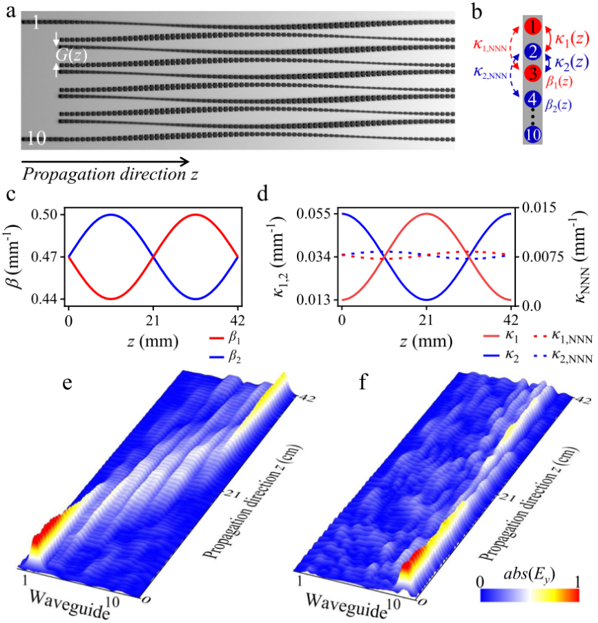 beat365在线唯一官网庄松林院士领衔的未来光学实验室、超快非线性光学创新团队程庆庆教授联合南京大学、中山大学、澳大利亚国立大学和以色列理工学院,创新地提出非傍轴引发的非对称拓扑输运,成果发表在国际顶级刊物《自然·通讯》(Nature Communications)上。该成果的发表为新型集成光子学元件研究提供了新途径,同时为非傍轴光子拓扑的研究提供了新平台,使得波导阵列具备广阔的应用前景和作为基础研究平台的学术价值。