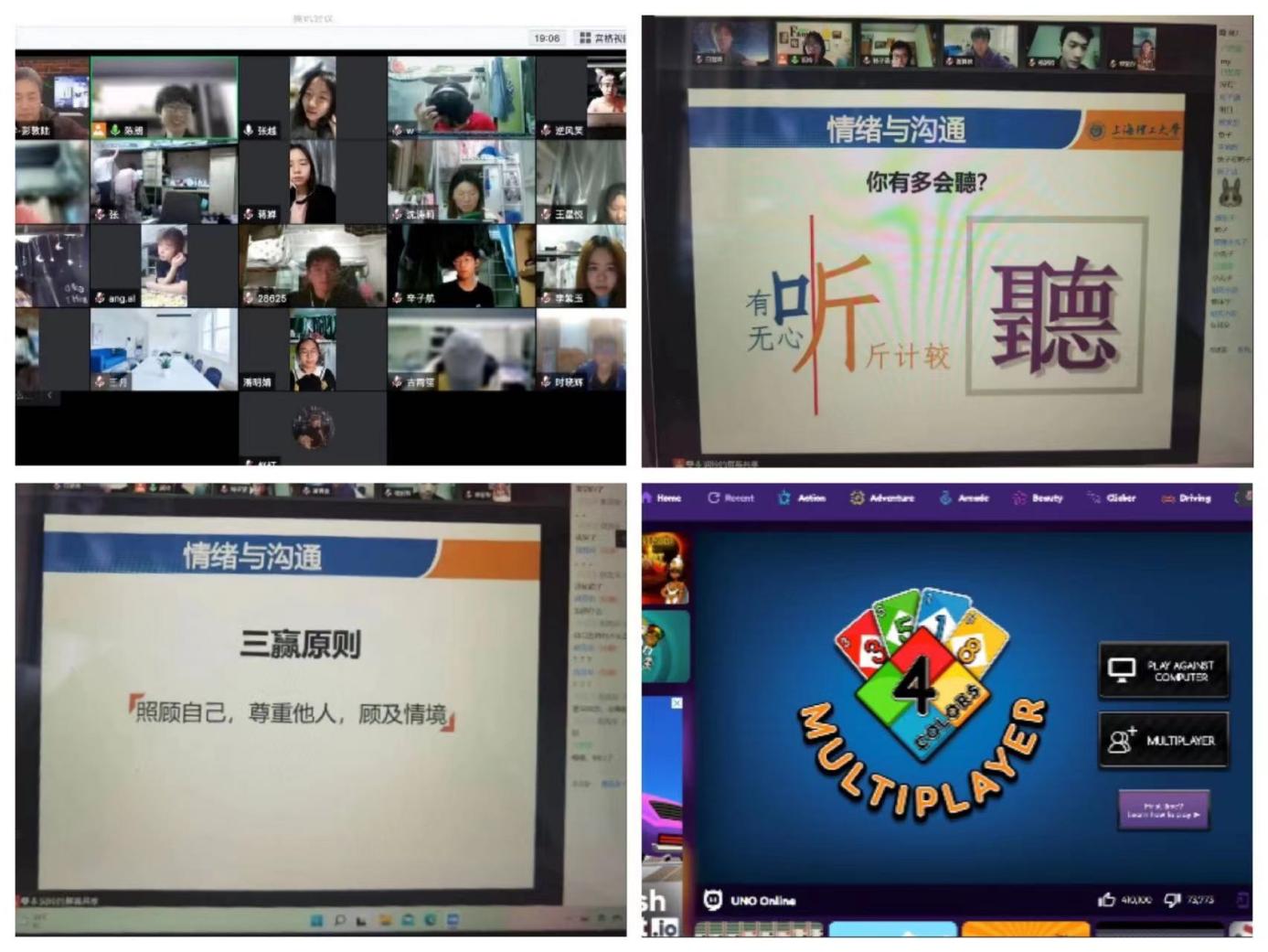 学校实行封控以来,学院班主任、导师、辅导员们始终陪伴着同学们,用心用情关心关注封控环境下同学们的心理健康。副院长刘一于5月3日与课题组师生举行“云端·读书会”,分享《中美能避免修昔底德陷阱吗?》一书,师生畅谈读书心得体会,共同响应习近平总书记“爱读书、读好书、善读书”的号召。彭敦陆副院长、光电系彭润玲副教授等本科生班主任纷纷组织召开线上班会、团建活动,通过游戏、探讨让同学们释放压力、收获乐趣。韩森教授课题组举办了以“分享”为主题的线上交流会,韩教授分享了“工程与艺术”小故事以及自己在德国读博时期的小趣事,同学们互相分享美食、运动、音乐等生活内容,更有同学热情献唱,活动气氛热烈。学院团委组织团学骨干开展“青春无悔,共同抗疫”线上专题研讨,为11位新团员举行了入团仪式,特别推出《追光青年》“一夜长大”“破茧成蝶”特辑,展现广大光电青年学子在抗击疫情中的收获与成长。