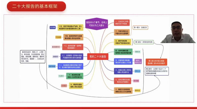 郭琦老师从过去五年的工作和新时代十年的伟大变革、开辟马克思主义中国化时代化新境界、新时代新征程中国共产党的使命任务和切实把二十大精神的丰富内涵学深学透四个方面,向我们讲述了学习二十大精神,我们要紧密团结在以习近平同志为核心的党中央周围,牢记空谈误国、实干兴邦,坚定信心、同心同德,埋头苦干、奋勇前进,为全面建设社会主义现代化国家、全面推进中华民族伟大复兴而团结奋斗。