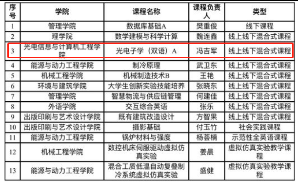 近日,上海市教育委员会发布《上海市教育委员会关于公布2022年度上海高等学校一流本科课程认定结果的通知》(沪教委高〔2023〕2号),我院冯吉军教授负责的《光电子学(双语)A》被认定为2022年度上海高等学校一流本科课程(入选线上线下混合式课程)。截至目前,学院共获得认定4门上海高等学校一流本科课程。
