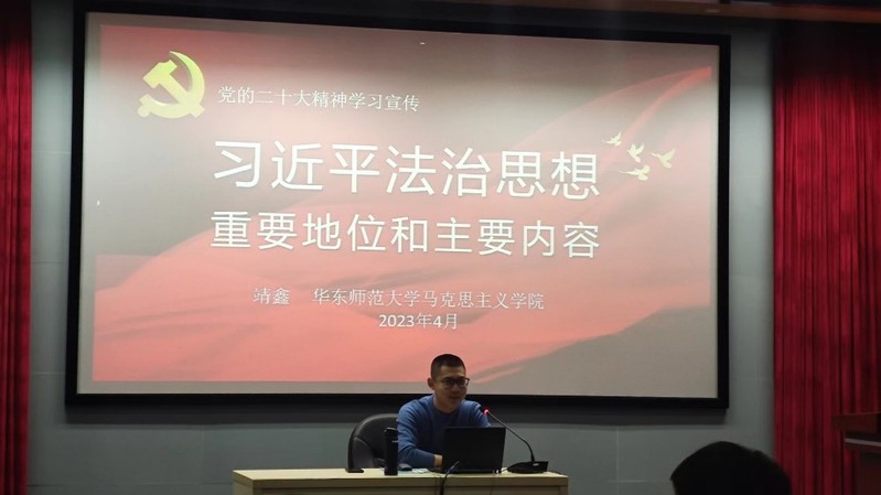 2023年4月22日上午,光电学院预备党员党校邀请了华东师范大学马克思主义学院的靖鑫老师,为同学们主讲题为“习近平法治思想重要地位和重要内容”的主题党课,预备党员党校全体成员参加。