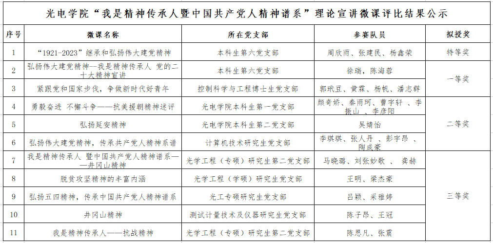 光电学院关于“我是精神传承人暨中国共产党人精神谱系”理论宣讲微课评比结果的公示