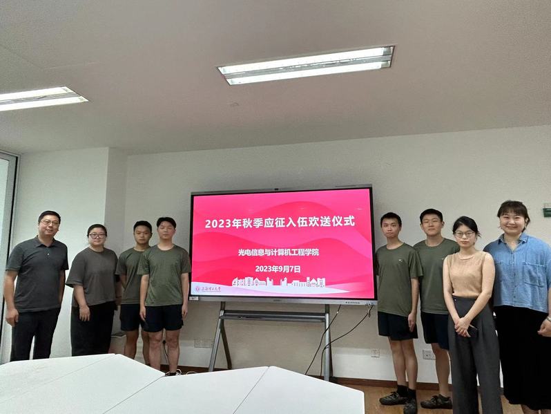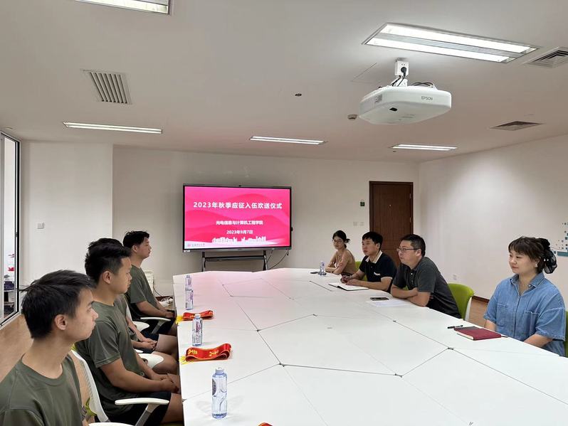 光电学院2023年秋季应征入伍欢送会于9月7日上午在光电大楼1005会议室举行,光电学院党委副书记何可、辅导员代表、四位入伍学生参加了本次欢送会。
