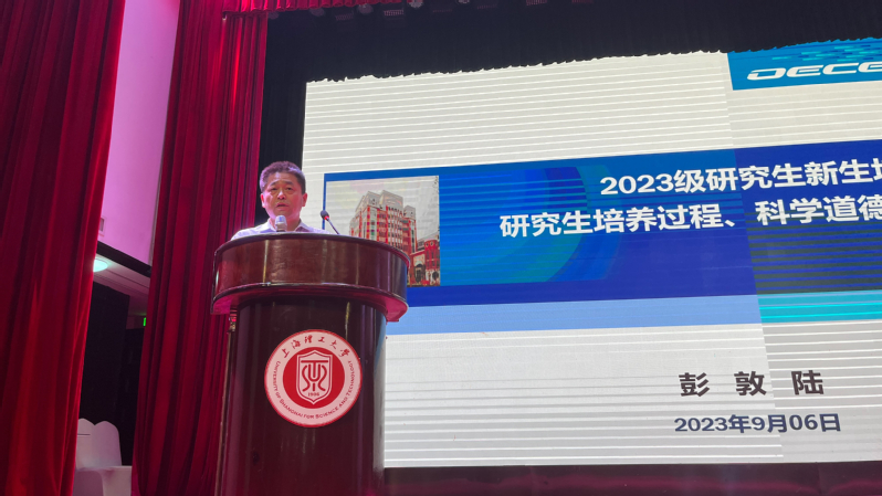 典礼后,学院副院长彭敦陆为新生们进行了研究生教学培养管理、学风建设与学术道德的解读和宣讲。