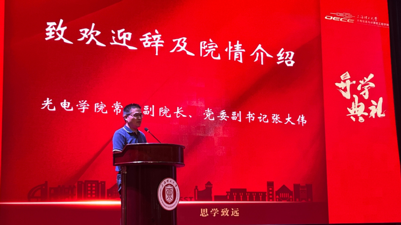 学院党务副院长、党委副书记张大伟向同学们介绍了学校和学院的发展历程,并从学术科研、师资队伍、人才培养和社会服务等方面介绍了学院近年来取得的可喜成绩。他指出,学院今后将持续以立德树人为根本任务,以国家重大战略需求为导向,放眼国际、对标先进,以刀刃向内的勇气和担当加快推进各项改革,推动学院事业发展迈向新台阶,为国家紧缺人才培养和关键技术突破而努力奋斗,他希望同学们要珍惜宝贵的求学机会,以“时不我待”、“强国有我”的精神和魄力时刻督促自己,以庄松林院士为榜样爱党爱国、甘于奉献,励精图治,全面发展,为国家现代化建设和中华民族伟大复兴不懈奋斗打下坚实基础。