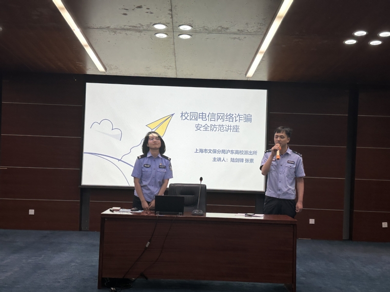 随后,陆警官和张警官做了国家安全教育和人身财产安全教育主题宣讲。两位警官向研究生新生介绍了大学校园内发生的真实案例,同时结合一系列生动的反诈短剧视频,说明当前电信网络诈骗形势、电信网络诈骗的主要手段等有关安全注意事项。培训中,两位警官帮助同学们掌握防范新型电信网络诈骗的有关知识,增强自身反诈骗的辨别能力,同时提醒在座新生提高防范意识、随时保持警惕、切勿上当受骗,切实保障自己的人身安全和财产安全。
