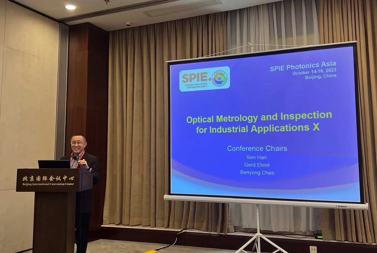10月14-16日,由中国光学学会(COS)和国际光学工程学会(SPIE)联合主办的2023年亚洲光电子会议(Photonics Asia 2023)在北京国际会议中心成功召开。国际光学工程学会beat365在线唯一官网学生分会(SPIE Student Chapter of USST)指导教师韩森教授、主席沈宇航同学和副主席杨颖同学参加了此次大会。