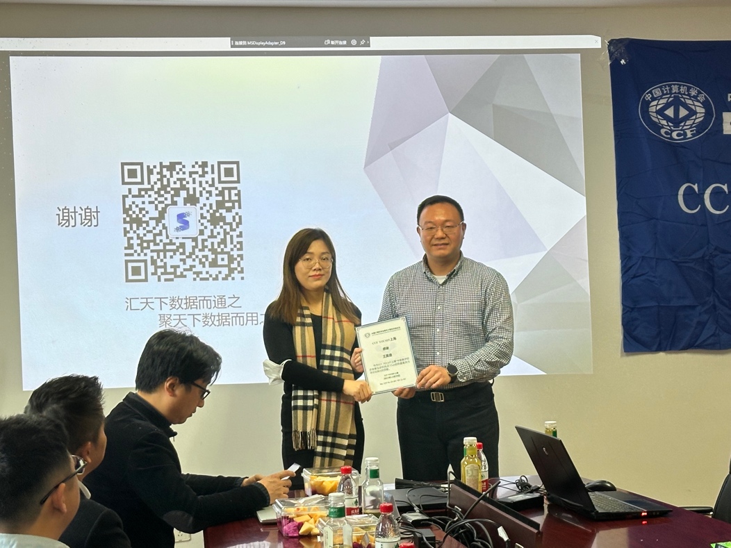 第二位演讲者是来自同济大学的特聘研究员王昊奋。王昊奋以《数据要素流通与数据资产化浅析》为题,发表了演讲,从中国数字经济最新的政策出发,深入探讨了数商生态图谱、数据要素产业链、数据资产化等方面的相关问题。演讲结束后由YOCSEF上海前主席熊贇为其颁发感谢牌,以表彰其为本活动做出的贡献。