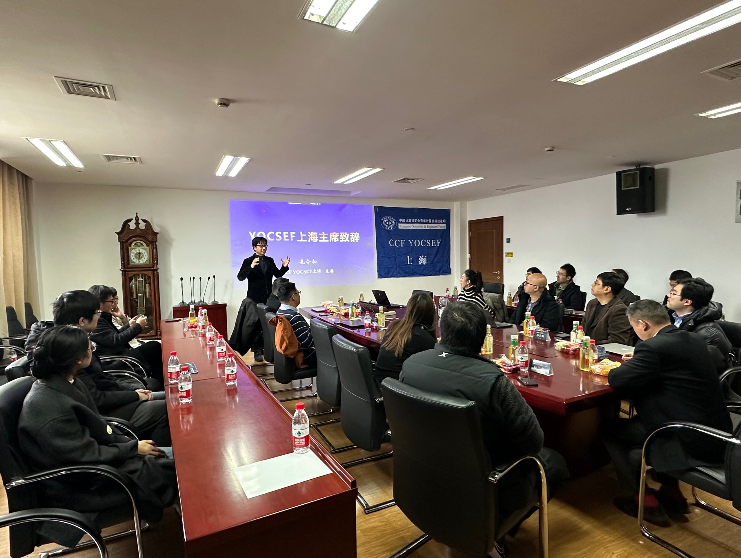 YOCSEF上海主席孔令和致辞。孔令和代表YOCSEF上海向来宾表示了热烈欢迎,介绍了YOCSEF上海的发展历程、以及在培养青年学者和计算机专业人才方面的成绩和贡献。