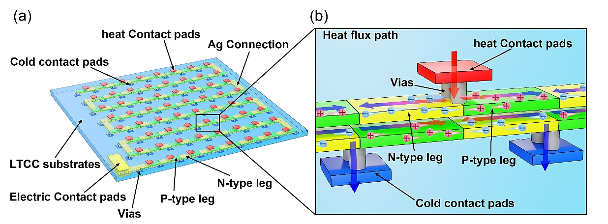 在微电子系统持续朝向高密度集成方向发展的趋势下,伴随而来的热聚集和热管理问题愈发严重,如何解决这些功率密度热可靠性问题已迫在眉睫。横向温差发电器在优化能源管理和小型化电源方面优势明显,结合传统工艺技术可开发与功率器件相集成的低能耗、高性能热电发电组件,从而供能于分布式传感器或可穿戴设备等低功耗器件,这种原位能量采集技术对于自供能系统的开发具有重要意义。