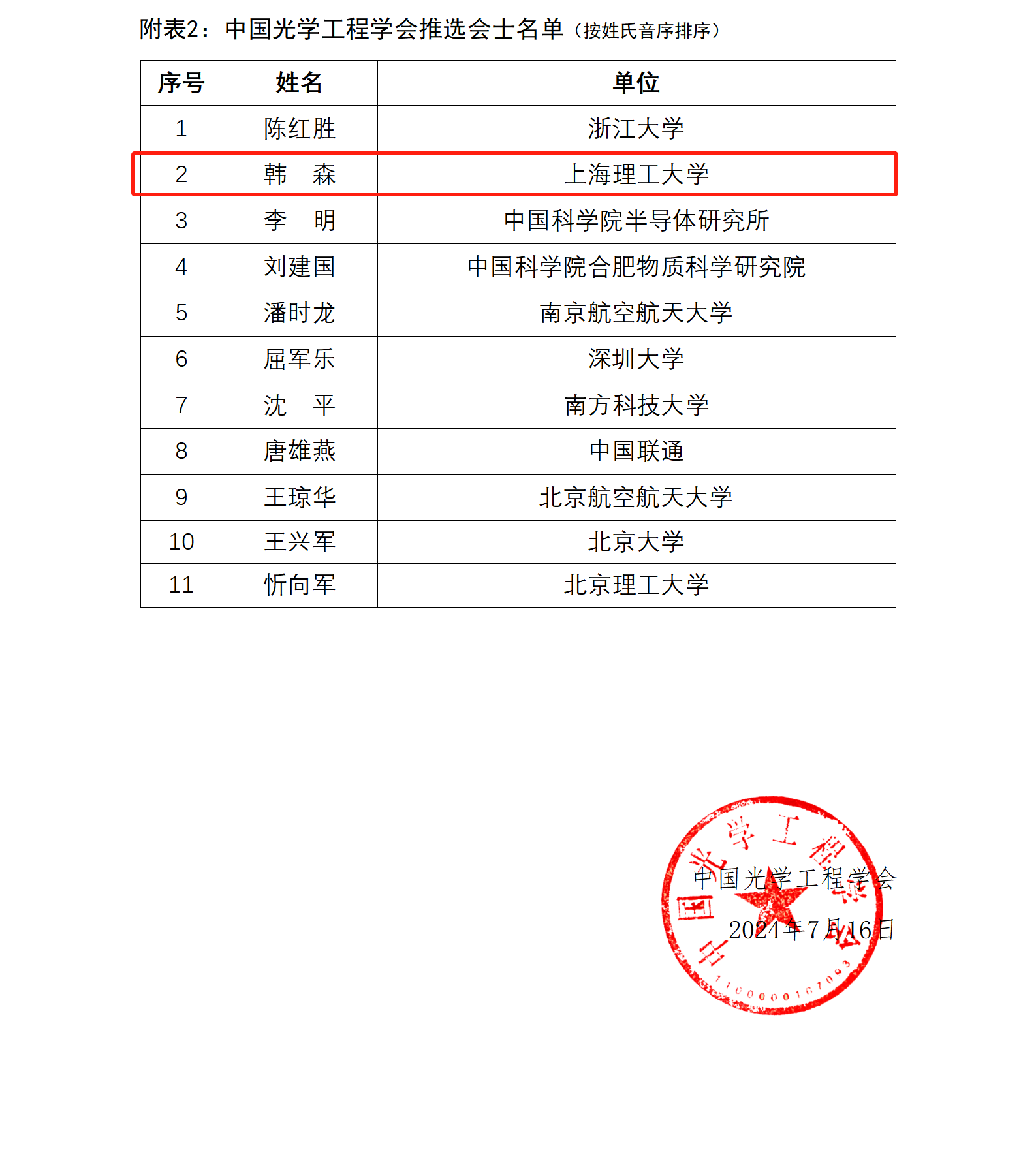 近期,中国光学工程学会公布了2024年度中国光学工程学会会士名单,beat365在线唯一官网韩森教授被授予“中国光学工程学会会士”的称号。
