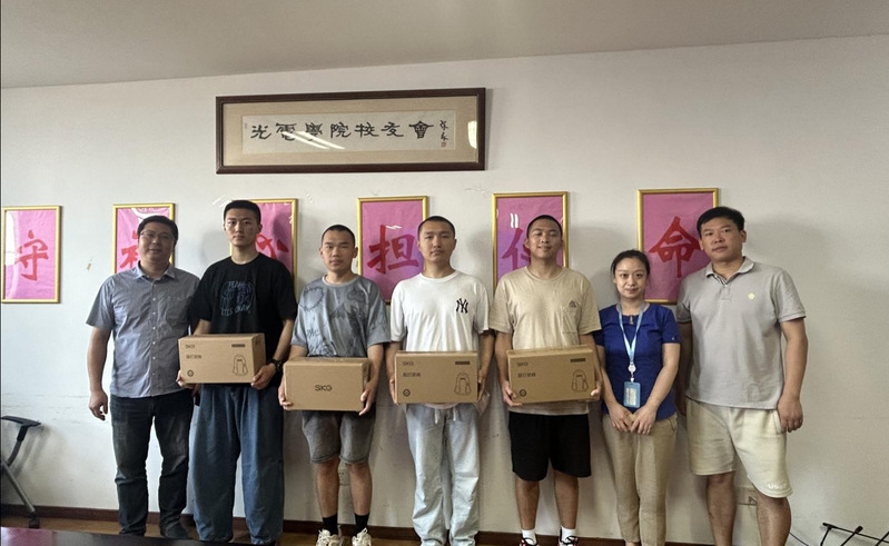 最后,学院领导为入伍学生赠送了学院精心准备的纪念品并合影留念。