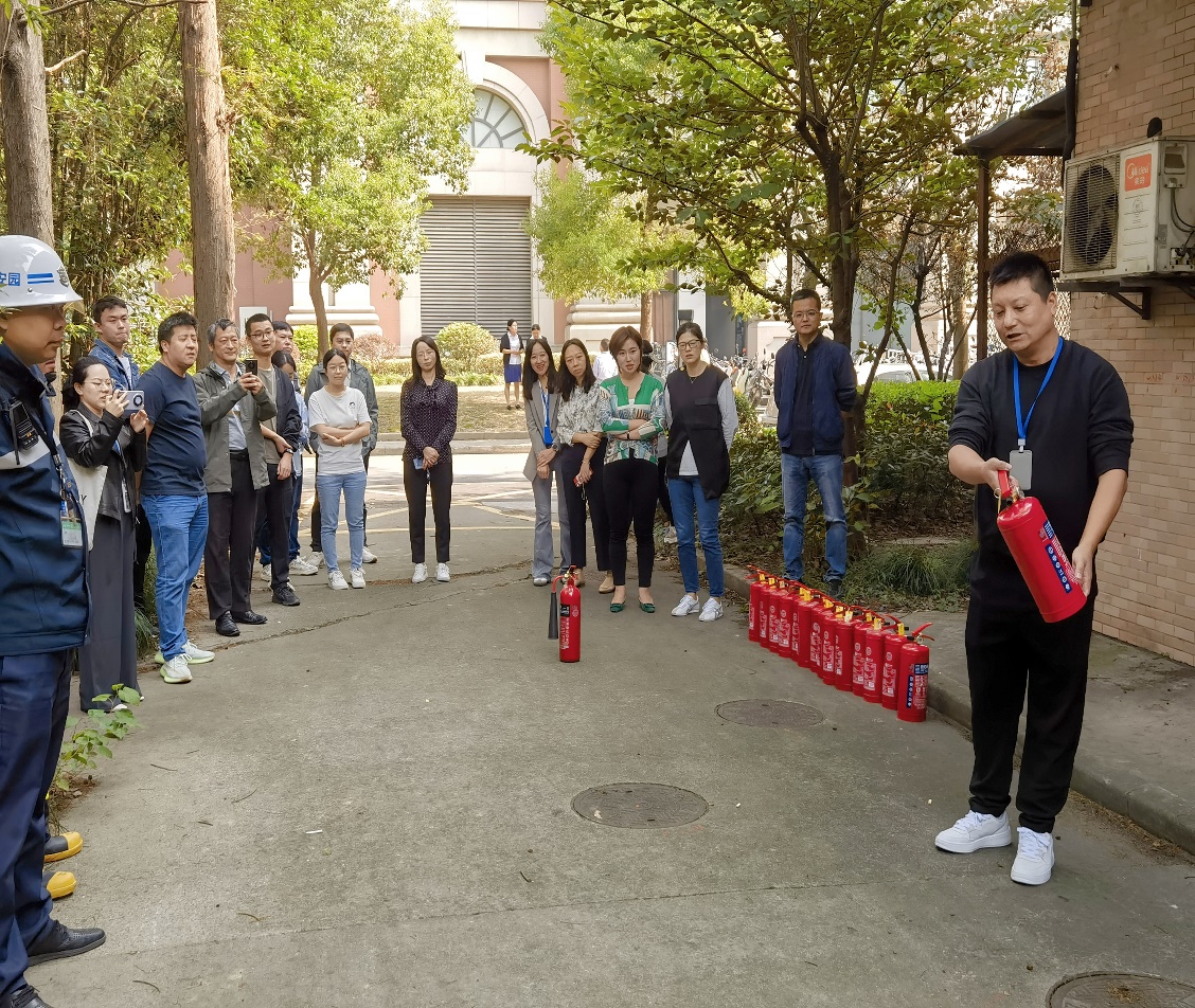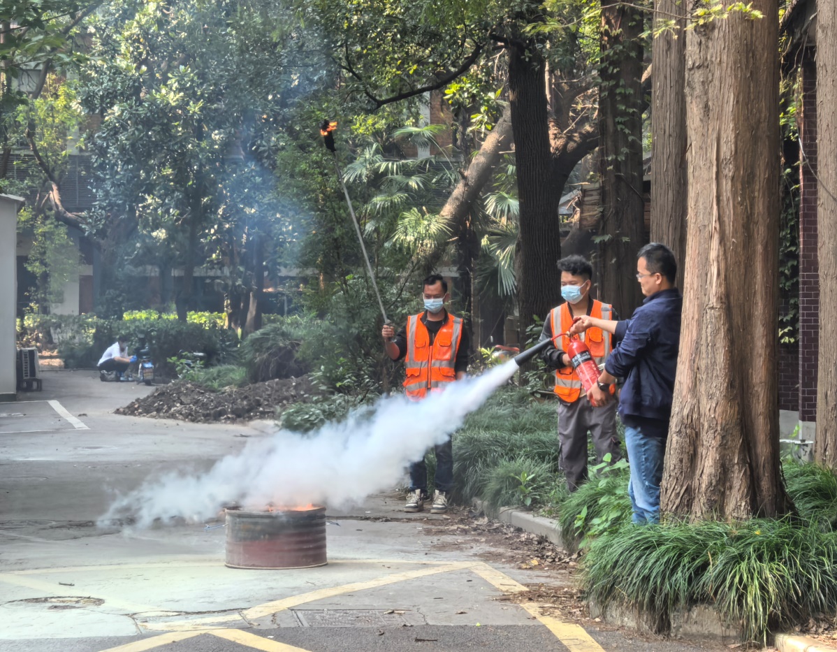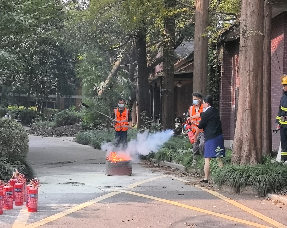 消防演练后,组织了消防器材使用培训与演练,保卫处负责人员向师生介绍了干粉及二氧化碳灭火器的使用方法,并组织师生对消防器材的使用进行了实践操作。