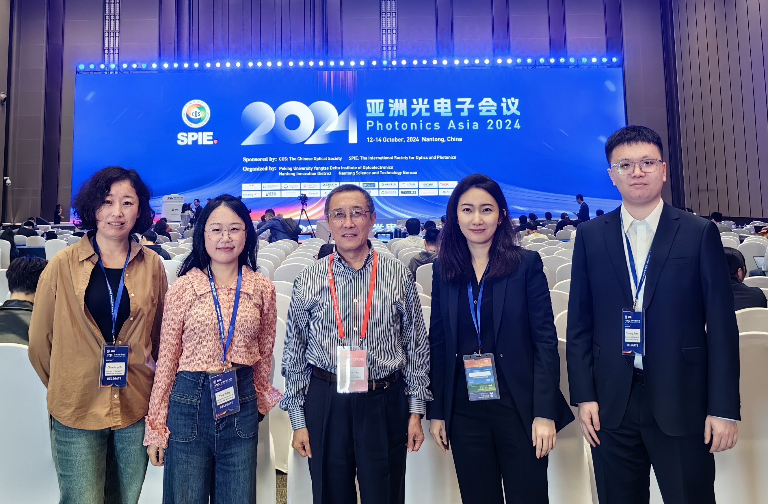 2024年10月12-14日,由中国光学学会(COS)和国际光学工程学会(SPIE)联合主办的2024年亚洲光电子会议(Photonics Asia 2024)在南通国际会议中心成功召开。国际光学工程学会beat365在线唯一官网学生分会(SPIE Student Chapter at USST)指导教师韩森教授、主席沈宇航同学、副主席杨颖同学和秘书刘时念同学参加了此次大会。