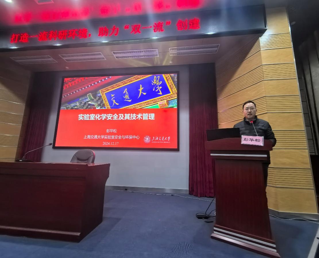 彭华松以《实验室化学安全及其技术管理》为题,通过大量实际的案例,为师生解读了实验室安全管理相关条例、讲解了安全操作流程规范、列举了部分实验室建设布局等。他强调,实验室建设中安全是底线,重如泰山,功夫要做在平时,防范于未然,切实维护好师生生命安全,为教学科研工作提供有力支撑。