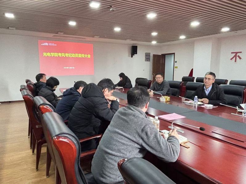 为进一步加强考风建设、严肃考试纪律、规范期末考试秩序,防止和杜绝学生考试违纪、作弊现象,维护考试的公平、公正,维护学校优良的考风、学风、教风和校风,共建光电风度,12月31日下午13:30,光电学院召开24-25-1学期末考风考纪动员宣传大会,光电学院党委副书记何可、各专业负责人、教研室主任、学院辅导员、教务办主任出席,会议由副院长高秀敏主持。