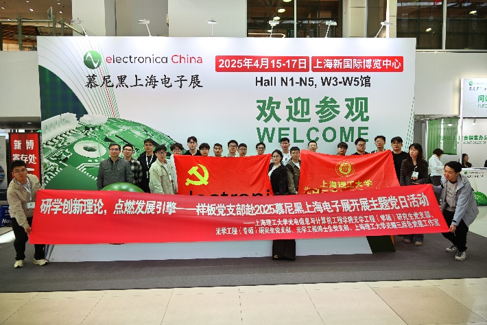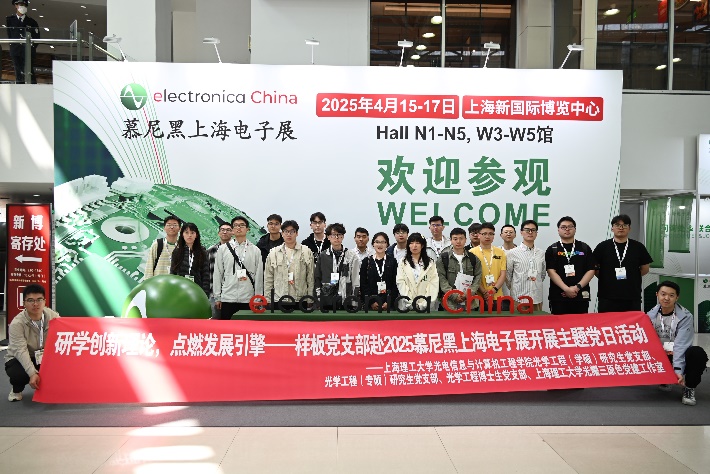 为深入贯彻落实全国“两会”关于推动科技创新和产业创新深度融合的重要精神,进一步拓宽研究生科研视野,增强对电子科技前沿动态的理解与认知,4月15日下午,光学工程(学硕)研究生党支部联合光学工程(专硕)研究生党支部、光学工程博士生党支部及光耀三原色党建工作室共同前往上海新国际博览中心,集体参观2025慕尼黑上海电子展,深入学习电子信息产业发展趋势,感受科技创新澎湃动能。