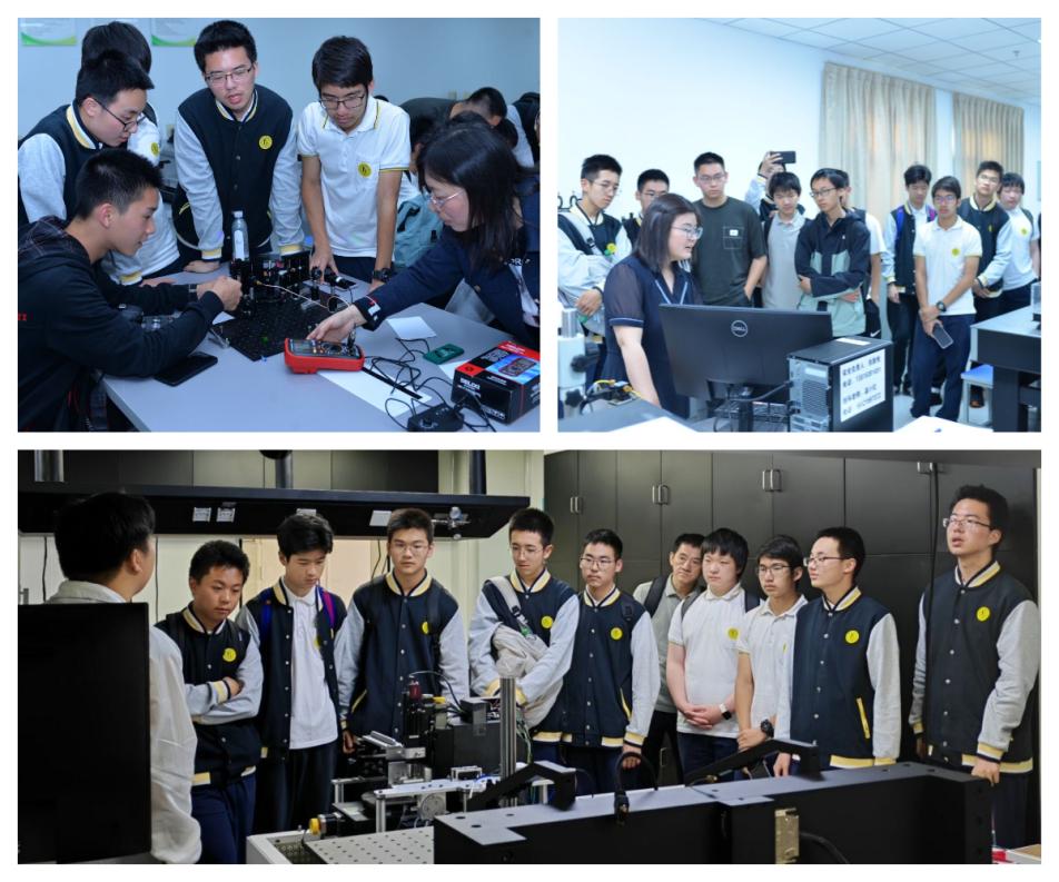 下午,科技节活动接待了上海市控江中学“致海书院”学生研学实践活动。同学们聆听了《追光一甲子,拳拳报国心》未来光学科学家精神报告和《光的波粒传奇——从微粒波动之争到太赫兹技术前沿》科普讲座后,进入本科实验教学中心。在韩朝霞老师的带领下,他们初识光谱技术,用光学元件搭建简易的扫描式光谱仪,直观认识了光谱仪的组成和原理,并观察到七色光谱。温小红老师展示的生物芯片检测实验,通过沉浸式操作体验,让同学们了解到生物传感器在老年疾病早筛和动态监测中的关键作用。随后,同学们来到beat365在线唯一官网太赫兹技术创新研究院,参观了研究生们正在进行的科研项目:太赫兹探测器、太赫兹超透镜、太赫兹人体安检仪、太赫兹近场扫描显微镜等。他们认真听讲、积极提问思维的火花在交流中不断碰撞。
