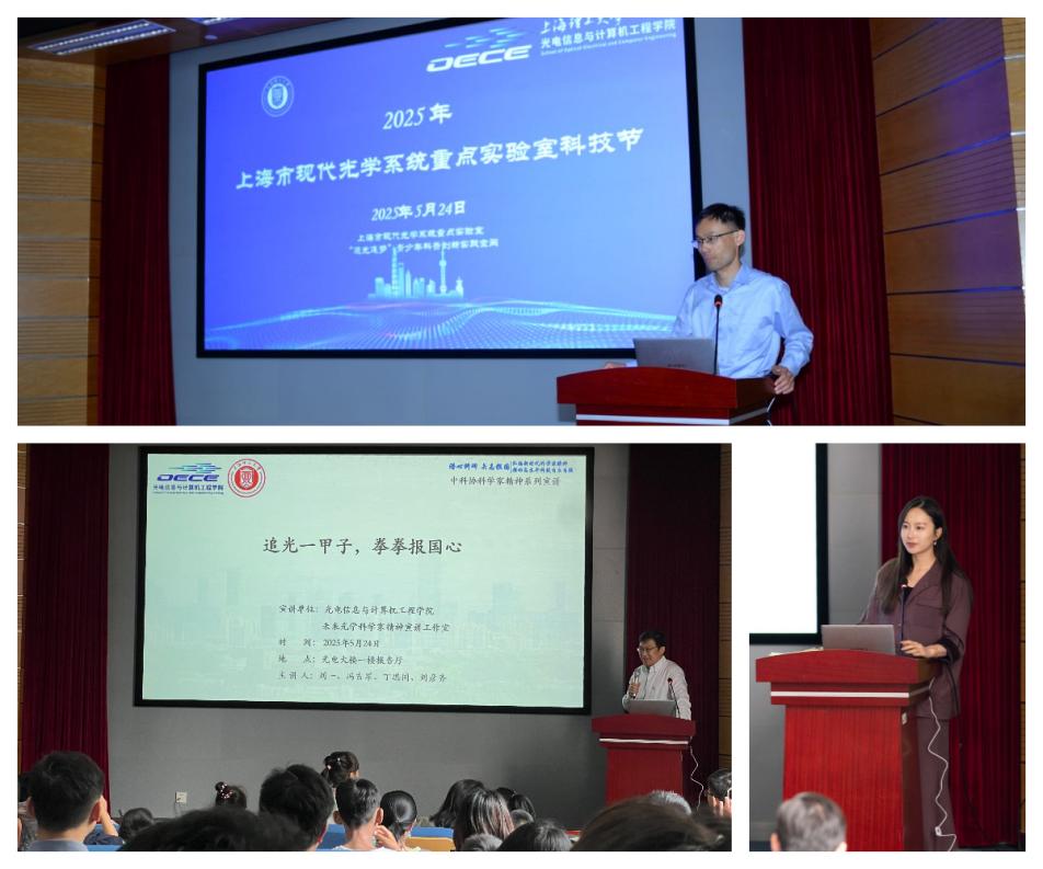 为深入开展“学思想,强作风,建新功”活动,进一步弘扬科学家精神,营造热爱科学、崇尚创新的校园文化氛围,推进深入贯彻中央八项规定精神学习教育走深走实,5月24日,上海市现代光学系统重点实验室举办了以“科技让生活更美好”为主题的科技节活动。此次活动也是学习教育期间,光电信息教工党支部和光电实验中心教工党支部联合举办的“一个支部一件实事”内容。