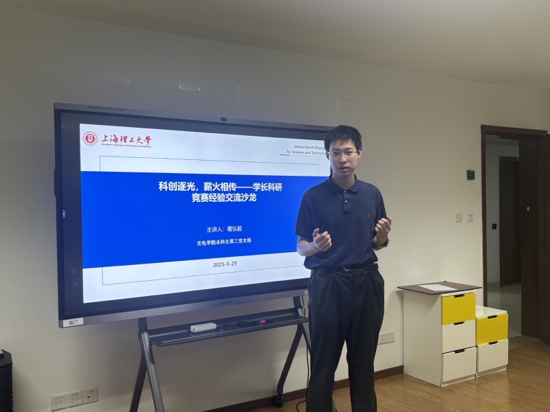 为深入贯彻科教兴国战略、人才强国战略与创新驱动战略,培养具备创新精神与实践能力的高素质人才,5 月 29 日 ,光电学院本科第三党支部在光电大楼 1005 举办了 “科创逐光,薪火相传” 科研竞赛经验交流沙龙。此次活动聚焦科研竞赛经验分享,旨在激发同学们的科创热情,助力青年学子在科研道路上稳步前行。