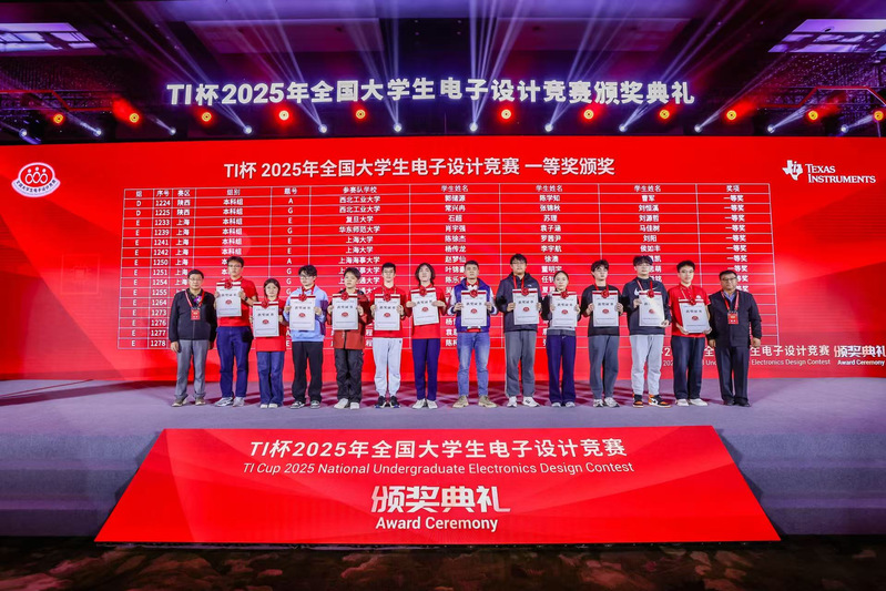 颁奖典礼现场嘉宾云集,场面宏大,气氛热烈,全国大学生电子设计竞赛组委会主任管晓宏院士、德州仪器中国区总裁姜寒先生等重要嘉宾出席典礼并致辞。管晓宏院士在代表大赛组委会的致辞中指出,学科竞赛通过真实项目驱动,有效弥合了理论教学与产业实际需求之间的鸿沟,已成为培养新时代创新型人才的重要抓手。他对广大参赛学生所展现出的扎实理论功底与突出实践创新能力予以高度认可,并强调,未来电赛将紧密围绕数字化、智慧化、绿色化等新质生产力发展方向,进一步强化基础研究能力培养,推动赛教深度融合。他鼓励各高校将竞赛内容与电子信息类专业课程的理论教学及实验实践环节有机结合,共同夯实我国电子信息领域高层次人才的培养基础。与会嘉宾一致认为,全国大学生电子设计竞赛在推动产教融合、激发学生创新潜能方面发挥了重要作用,并对参赛学生所表现出的优秀创新能力给予充分肯定。