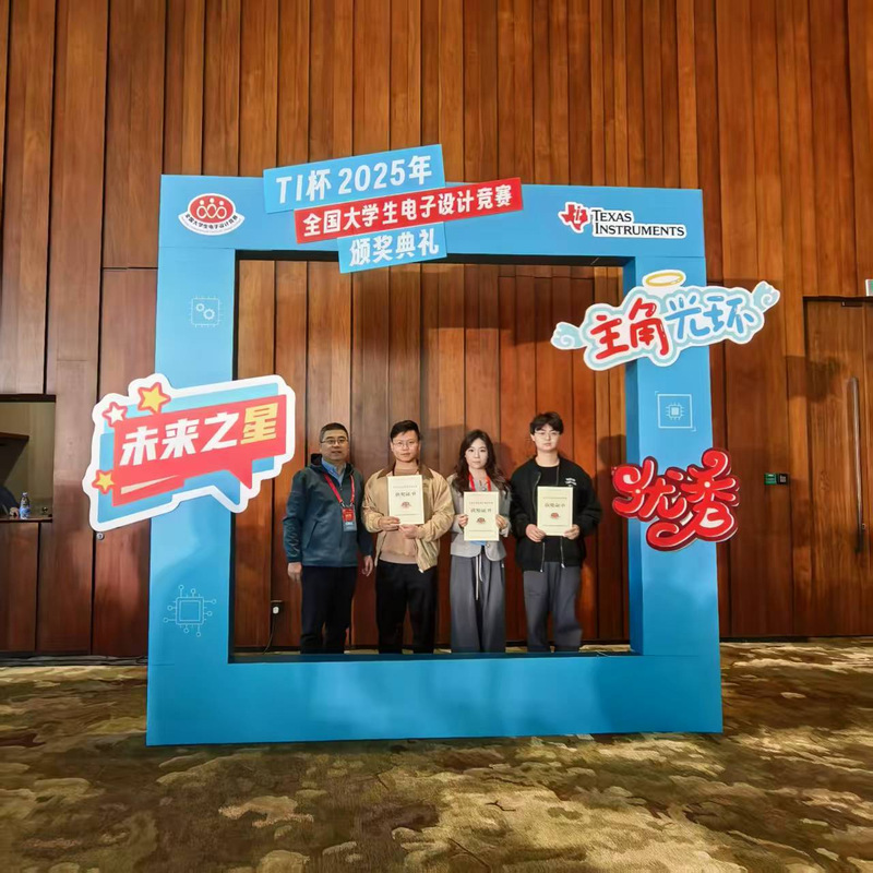 2025年全国大学生电子设计竞赛已于8月22日在大连理工大学圆满落幕。经过近2个月的筹备,2025年全国大学生电子设计竞赛总结暨颁奖大会于10月18日下午14点在京隆重举行,我院学生陶均泉、闫曦月、徐志鹏三位同学和指导教师瑚琦副教授赴京参加典礼。