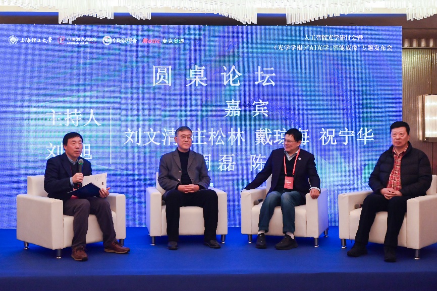 本次会议围绕人工智能光学领域分别安排了圆桌论坛和8个专题报告展开集中研讨。圆桌论坛中,庄松林院士、戴琼海院士、复旦大学副校长周磊、苏州大学陈林森教授从基础研究布局、关键技术突破、成果转化与产业应用等方面分享观点。专题报告环节,专家门系统展示了人工智能在光学成像、光电计算及相关仪器领域的最新进展,并为该领域技术创新与产业应用拓展了新思路、新路径。