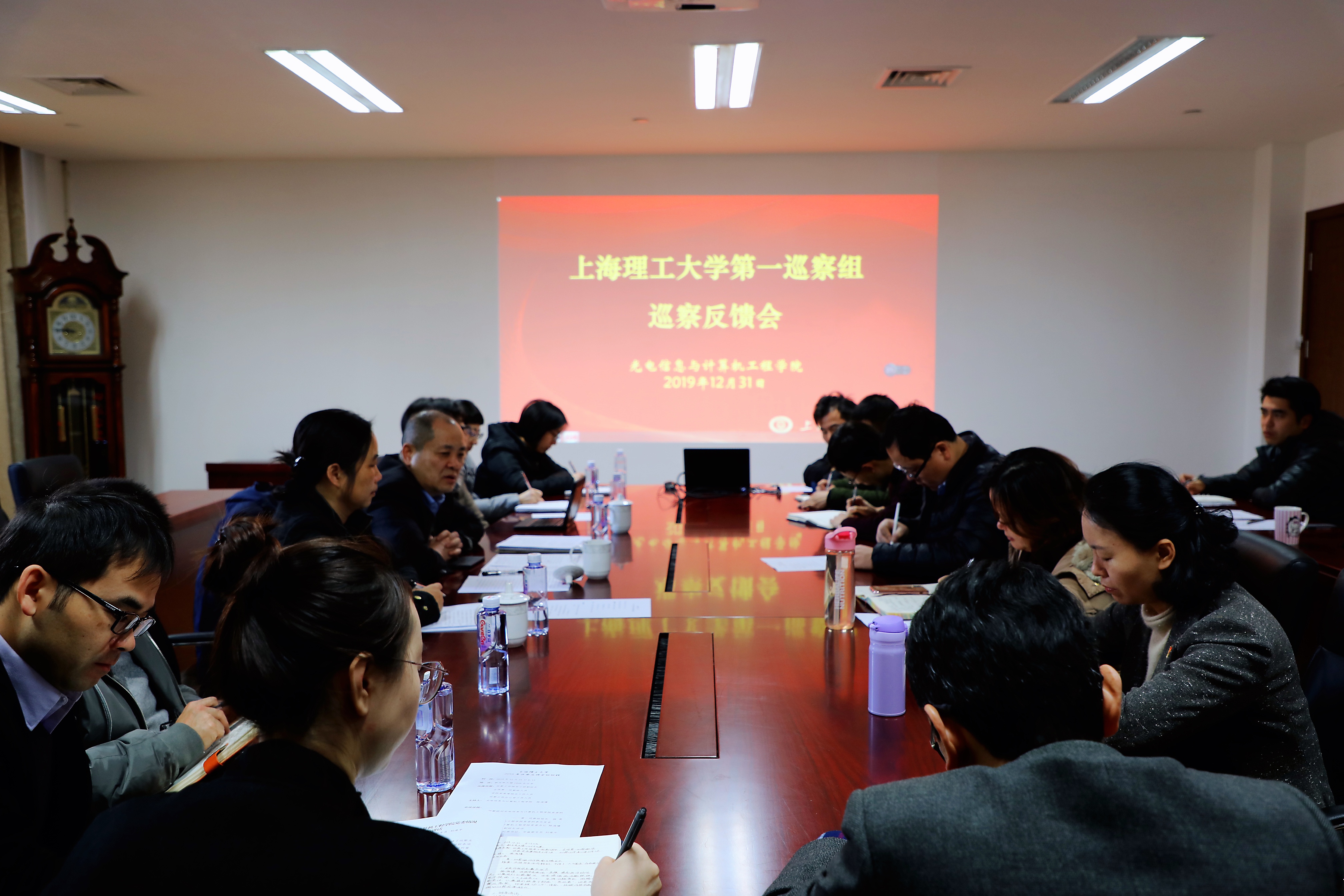 12月31日上午,按照学校党委工作部署,校党委第一巡察组向光电学院党委反馈了巡察情况。学校党委副书记、纪委书记、市监察专员刘道平出席会议,校党委第一巡察组组长杨英代表巡察组向光电学院党委进行了反馈。第一巡察组组员、光电学院全体党政领导和党委委员参加了反馈会。会议由光电学院党委书记陈海瑾主持。