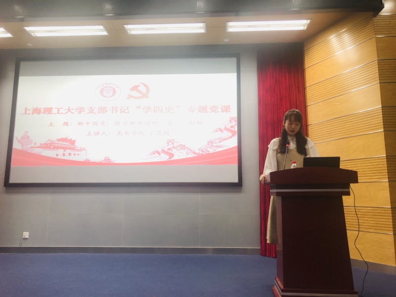“新中国第一批国产汽车何时研制成功?”“新中国第一例自体骨髓移植在何时成功进行?”“新中国第一条‘地下大动脉从哪到哪,并于何时建成输油?”。1019日,光电学院研究生支部书记丁思同以“探寻新中国‘第一时刻’”为题目,从科技强国与制造强国建设,人才强国与文化强国建设,航天强国与海洋强国建设三个方面,讲述了新中国科研人员科研报国、科技强国的初心和使命,为学院学生党员带来一堂生动的示范党课。