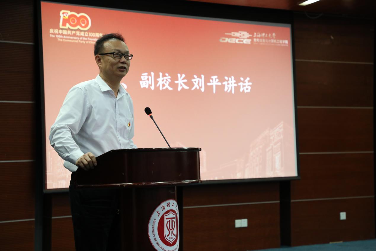 最后,刘平副校长发表讲话,并带领与会党员重温入党誓词。刘平对受表彰的个人和集体表示祝贺,对光电学院取得的成绩予以认可,他表示,这些成绩体现了光电学院党委坚持党建引领,带领全院师生共谋事业发展上的坚强领导力、组织力和战斗力。今年是十四五开局之年,学校发展面临重大机遇与挑战,为实现特色显著的一流理工科大学目标,需要我们从党史学习中汲取力量,接续奋斗。他对学院师生提出了三点希望。一是,坚定理想信念,做赓续红色革命基因的传承人。希望大家有时间都去参观刘湛恩烈士故居主题馆,用好用活身边的红色资源,将学校悠久的爱国主义传统和奋斗精神传递给更多的师生。二是,着力创优争先,做践行“四有”好老师的排头兵。学院党委要把握正确的政治方向,引导教师立德树人,不断提高业务能力和教育教学质量,积极投身到课程思政改革中,为党育人、为国育才。三是,努力率先垂范,做助推学校事业发展的先行者。生逢盛世,肩负重任,每一个上理人、光电人都应当以坚定的理想信念、严谨的科学态度和敢啃“硬骨头”的创业精神走好新时代科学研究的长征路,做助力学校事业发展的先行者,为学校高水平大学建设和服务社会发展积蓄能量、贡献力量。