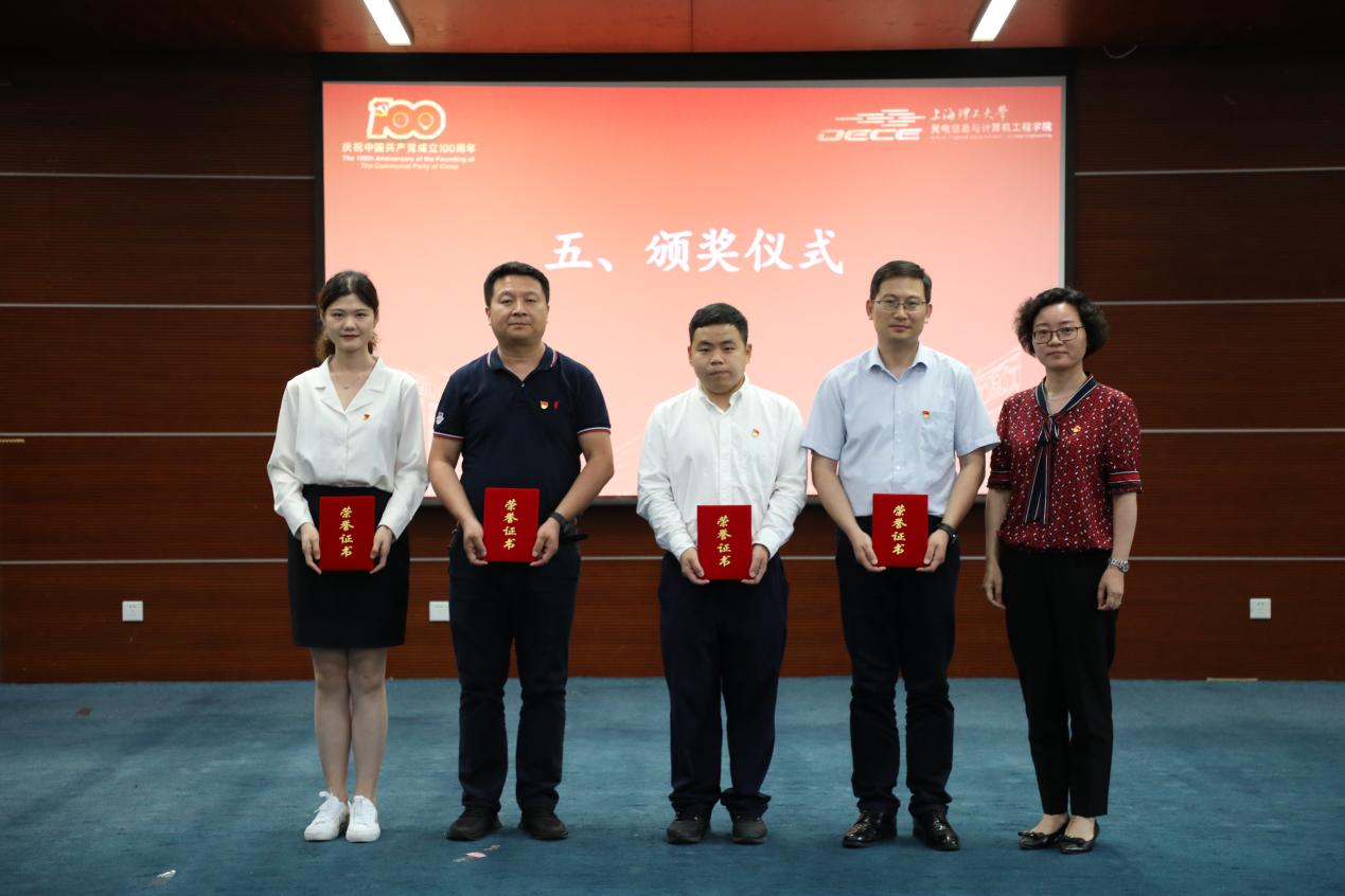 大会在庄严的国歌声中拉开序幕,与会人员一同观看了《党建引领 追光逐梦—光电学院党委风采巡礼》视频,总结回顾了学院党委在学校党委领导下,以党建引领事业发展,取得的一系列瞩目成绩。随后,学院常务副院长、副书记张学典宣读学院“两优一先”表彰决定。组织部副部长李琴宣读市级和校级党建获奖喜报,并为校卓越党支部最佳党建案例、优秀主题党日获奖集体颁奖。学院领导和党委委员依次为校“两优一先”和院“两优一先”获奖个人和集体进行了颁奖。