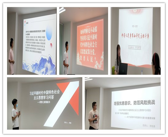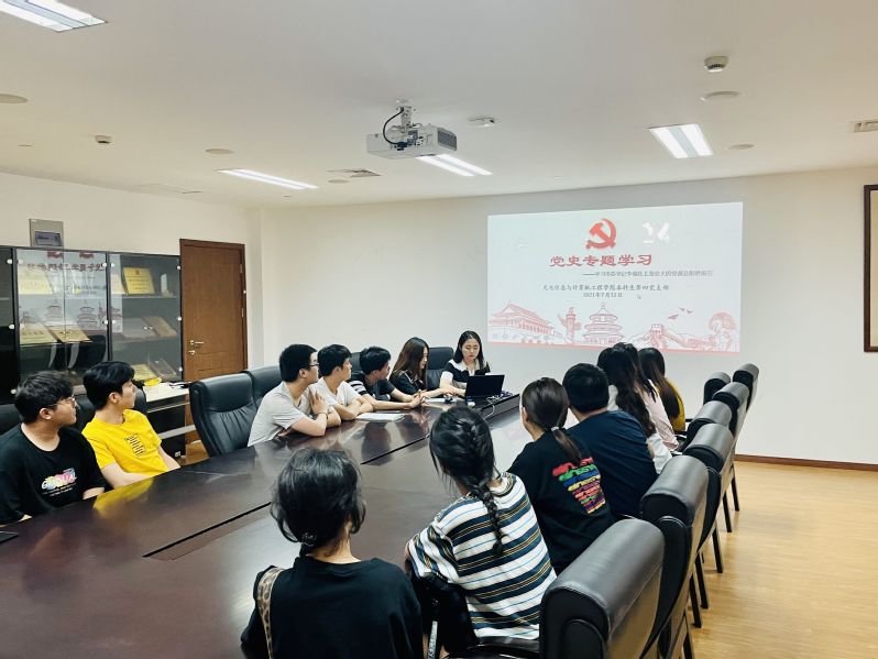 为深入学习贯彻习近平总书记在庆祝中国共产党成立100周年大会上的重要讲话精神,扎实推进大学生党员党史学习教育,光电学院本科生第四、第五、第六党支部以主题支部大会的形式召开“学习习近平总书记在庆祝中国共产党成立100周年大会上的讲话精神和党史学习教育”专题组织生活会。光电学院本科生第六党支部则以读书沙龙的形式,召开“学习习近平总书记在庆祝中国共产党成立100周年大会上的讲话精神和党史学习教育读书分享会”主题党日活动。支部党员围绕《习近平论中国共产党历史》、《毛泽东、邓小平、江泽民、胡锦涛关于中国共产党历史论述摘编》、《习近平新时代中国特色社会主义思想学习问答》、《中国共产党简史》等书籍,以初心之地,光荣之城——中国共产党全国代表大会在上海为主题,围绕中共一大:伟大开端为主题,中共二大:党的诞生之崭新局面,中共四大:顶天立地,力量之源等开展主题分享。